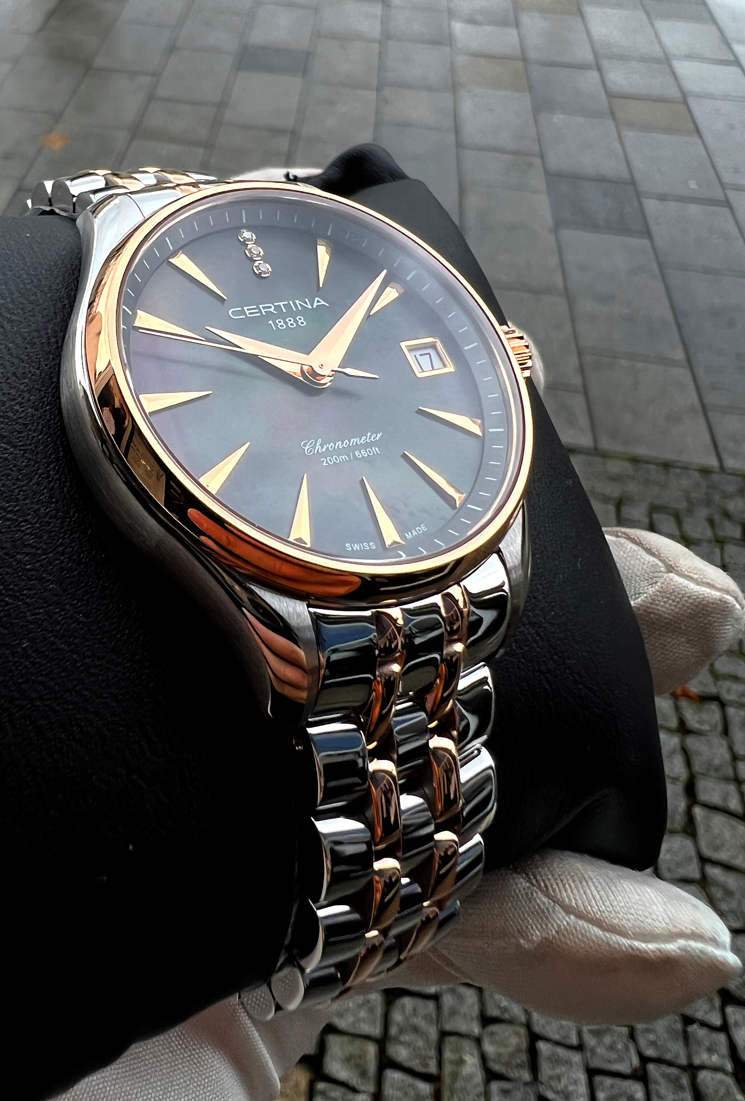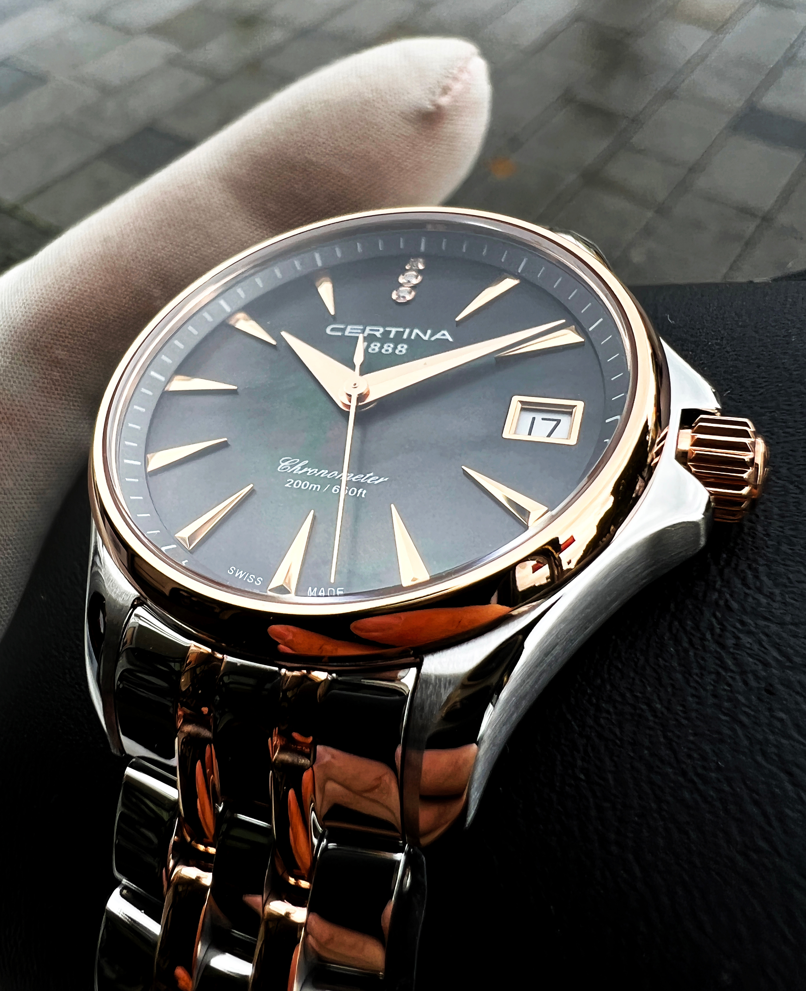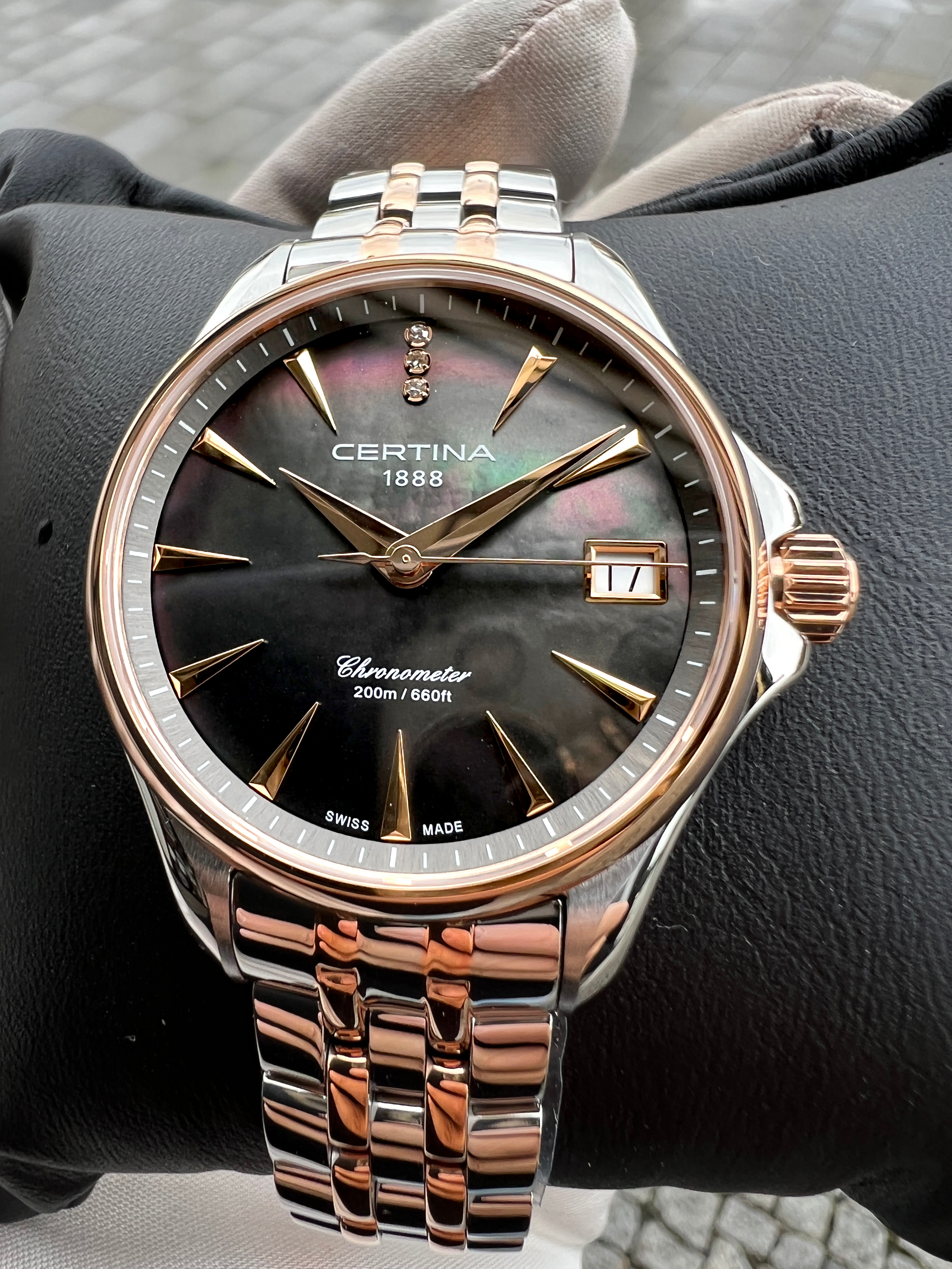 černá perleť s diamanty
